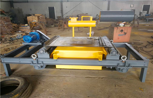 7、卸铁机构由机架、摆线针轮减速机(以下简称减速电机)、主从动滚筒。托辊、链轮、链条和装有卸铁刮板的卸铁皮带组成。卸铁皮带的松紧和跑偏的调整可在不停机的情况下利用轴承调节装置进行。